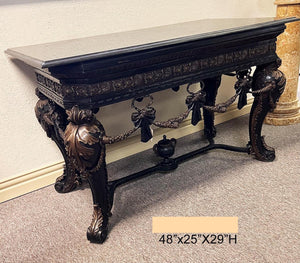 Explore Victorian and Renaissance bronze console tables, unique decorative bronze console tables and sofa tables which add character and form to your living room spaces. Our choice big bronze console tables for sale are replete with decorative impressions of the Renaissance past with cherub and angel designs that detail and herald the look of the Victorian and Renaissance era. Choose a fine line of bronze console tables which may come with marble or granite top with Renaissance bronze console tables and antique Victorian console tables that are laboriously hand detailed to add a commanding attention in the living room. Our accent tables also include smaller bronze accent tables which add to the character of the living room space and are beautiful additions for complementing your decorative projects for your formal living room. Please email us at tion_art@yahoo.com for more information on our bronze console tables and enchanting accent tables for the home.