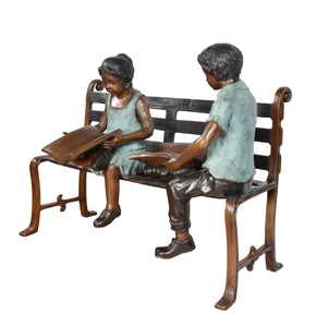 Bronze Reading Boy and Girl with Books on Bench Statue