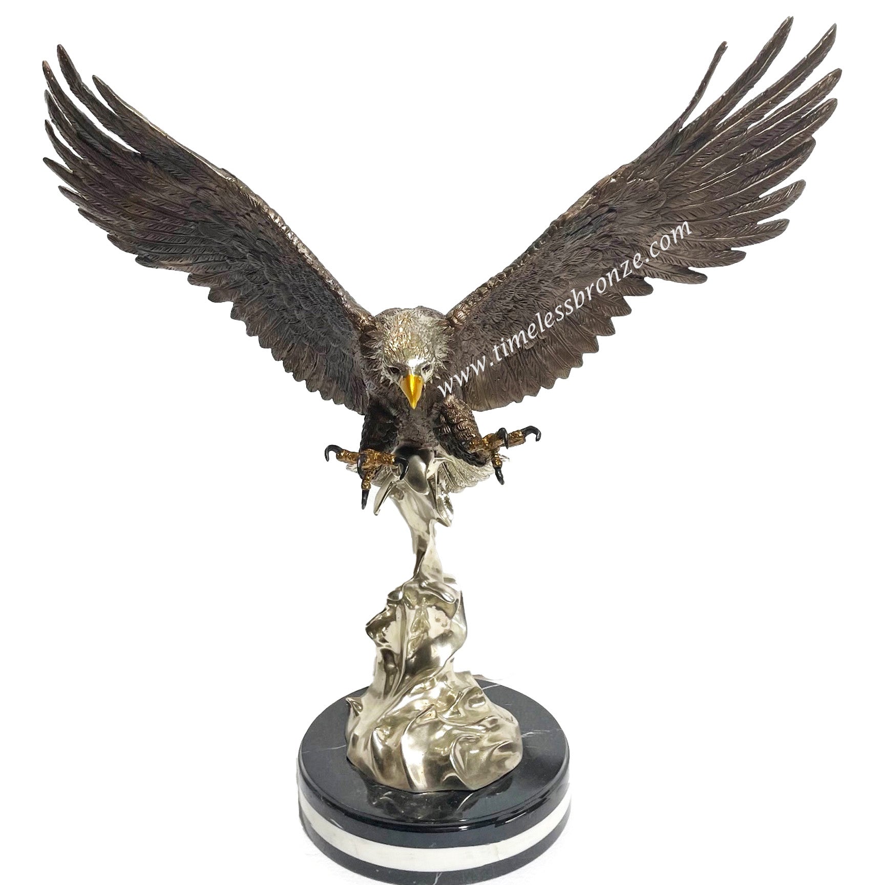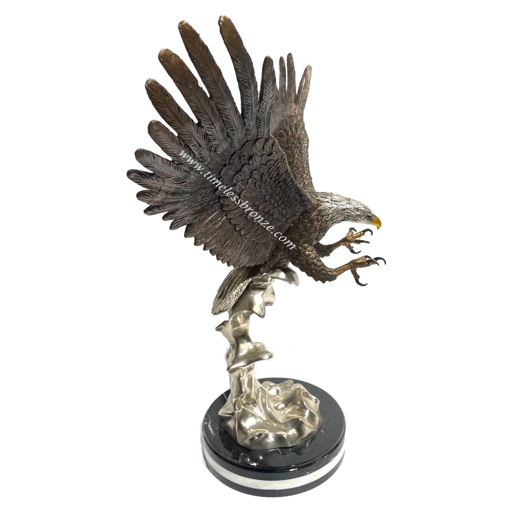 An inspiring sculpture, our eagle is designed for the home and is suited for a law office or veteran office looking to display an eagle sculpture indoors. It is also suited for government offices and businesses interested in highlighting a descending eagle as shown in the picture.