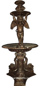 Bronze Tiered Cherub Fountain with Dolphin Themed Base