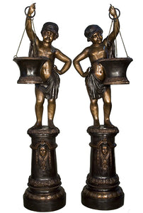 Architectural Life Size Bronze Boy Planter Statues - Pair