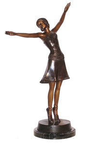 Dancer statues, especially bronze ballerina statues, Degas statues, and Art Deco dancer sculptures like Chiparus bronze dancers, capture the elegance and movement of dance in timeless artistic forms. Ballerina statues often showcase classical ballet poses such as arabesques and pirouettes, emphasizing grace, balance, and poise. Edgar Degas statues, like his iconic "Little Dancer of Fourteen Years," reflect impressionist movement, capturing fleeting gestures and the discipline behind ballet training. These Degas ballerina sculptures are revered for their realistic portrayal of young dancers in mid-pose, highlighting the tension and beauty of performance. Art Deco dancer statues, particularly Chiparus bronze dancers, reflect the flamboyant and stylized movement of the 1920s. Often adorned in exotic costumes with geometric patterns, these Chiparus sculptures depict dynamic poses, such as outstretched arms and flowing skirts mid-spin, inspired by the Ballets Russes and cabaret performers. Collectors and art enthusiasts value these bronze dancer statues for their historical significance, artistic craftsmanship, and the ability to freeze graceful movements.