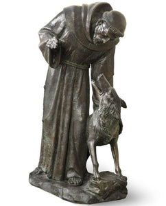 63” Life Size Saint Francis with Wolf Bronze Statue Reproduction