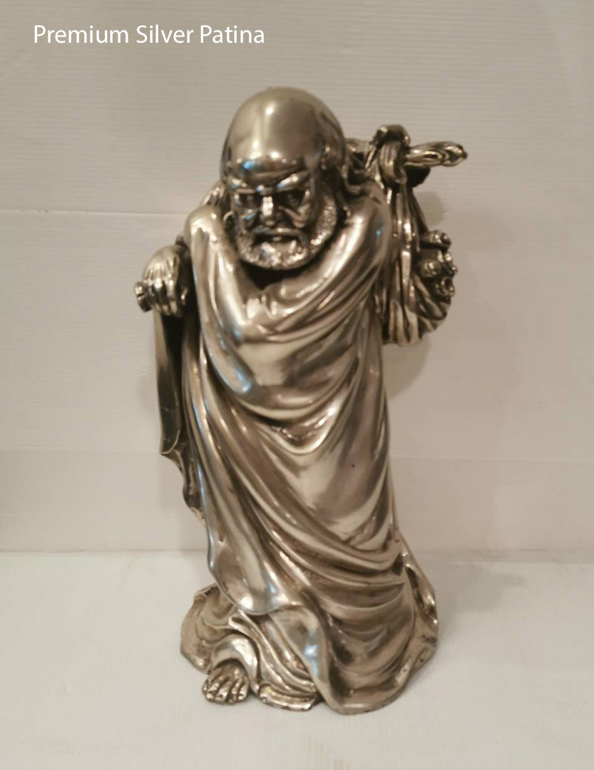 Highlighting character and nobility, this bronze Chinese old man sculpture comes beautifully detailed and will add to an Asian theme for the desk or shelf. Cast in bronze using the ancient lost wax process, our Chinese old man statue is seen here ready to make a pilgrimage by foot. This statue comes beautifully detailed with vivid and pristine details and will make a statement for a desk or as a collectible sculpture for the home. Comes with a bronze patina finish.