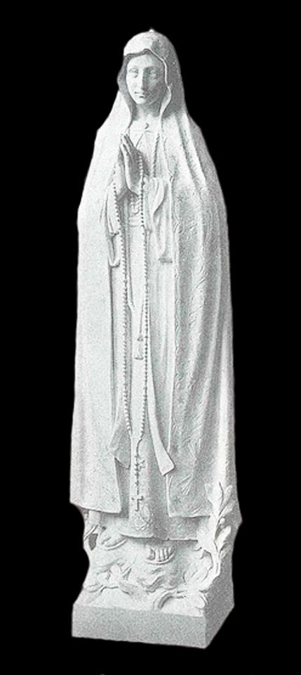 This exquisitely crafted Our Lady of Fatima marble statue presents the Virgin Mary in serene prayer, reflecting the miraculous apparitions she revealed six times to the three shepherd children in Fatima, Portugal. Designed to enhance spiritual spaces, this hand-carved Fatima garden statue is available in multiple sizes, making it ideal for home prayer gardens, church courtyards, Catholic schools, and devotional spaces. Each Virgin Mary Fatima sculpture showcases elegant detailing, from her peaceful expression to the flowing lines of her robes, capturing the grace and beauty associated with this beloved Marian devotion. Perfect for those searching for a durable outdoor Our Lady of Fatima statue or a meaningful indoor religious centerpiece, this marble artwork brings inspiration, reverence, and timeless Catholic tradition to any environment. Its breathtaking presence makes it a cherished choice for anyone seeking a high-quality Our Lady of Fatima statue for sale in the United States.