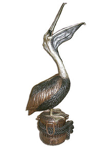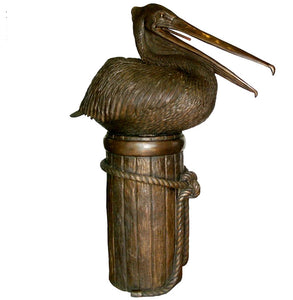 Bronze Large Pelican on Post Fountain Sculpture - 58”H